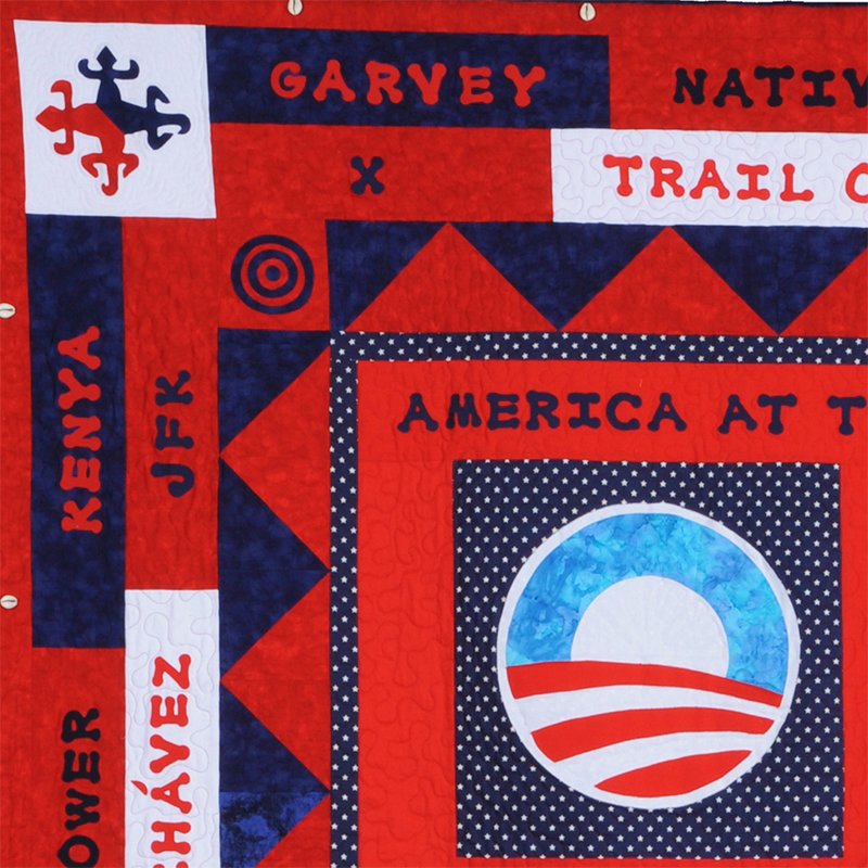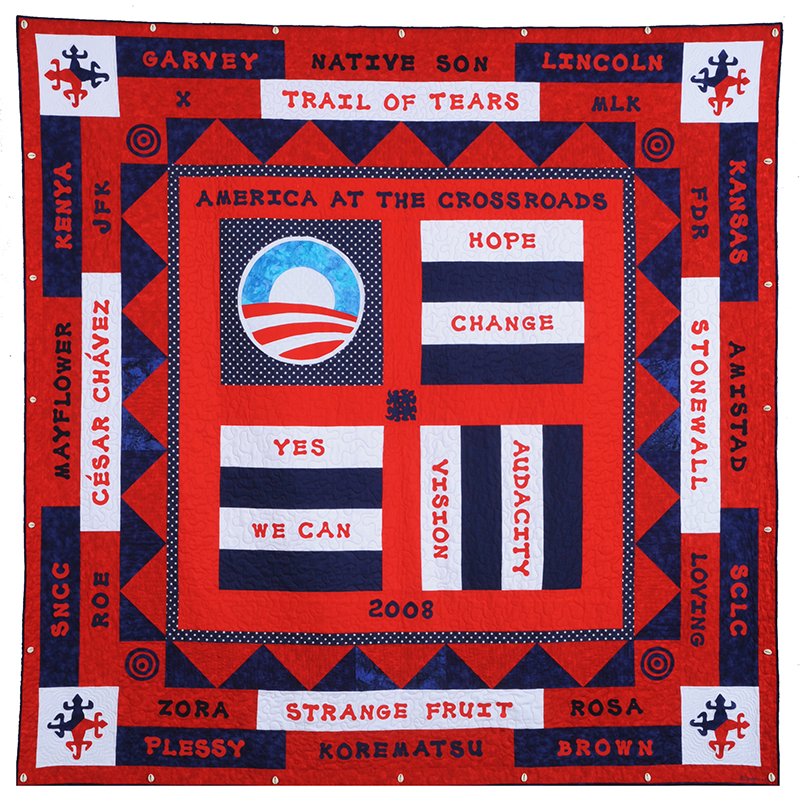With mathematical precision, this quilt delineates the intersecting social and political movements that have enabled the election of Barack Obama as our forty-fourth president. America at the Crossroads emblematizes the possibility of regeneration of the United States in the twenty-first century.